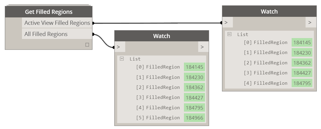 This node will get you all of the Filled Regions in the model. It also outputs them pre-sorted for the current view.